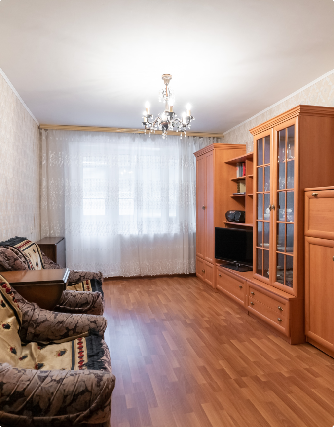Квартира была типовой для данного города. Без особых уникальных преимуществ: стандартная планировка, ремонт 5–10 летней давности и бюджетная бытовая техника.